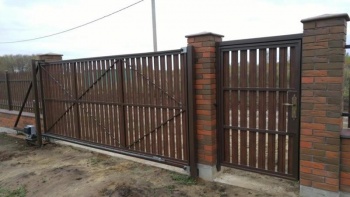 Фото работ - забор из евроштакетника с кирпичными столбами