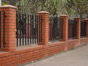 Сварные заборы с кирпичными столбами