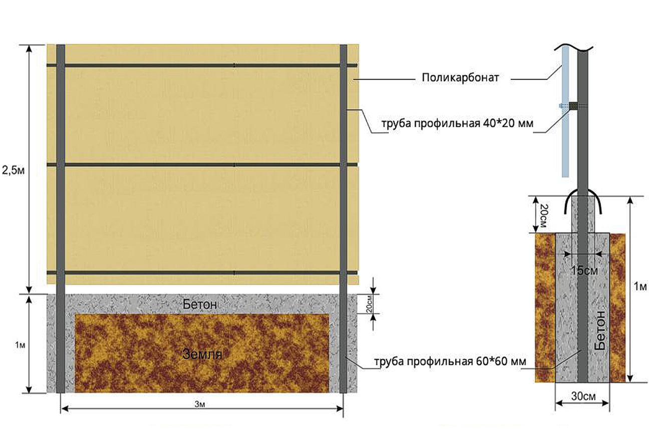 Стандартные характеристики каркаса навеса: столбы 80х80х3мм.